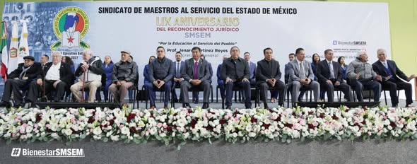 Jenaro Martínez Reyes, Secretario General, encabezó la conmemoración del LIX Aniversario del Reconocimiento Jurídico del SMSEM, en el histórico Auditorio “Prof. Agripín García Estrada”, acompañado por más de 4 mil delegadas, delegados y representantes sindicales.