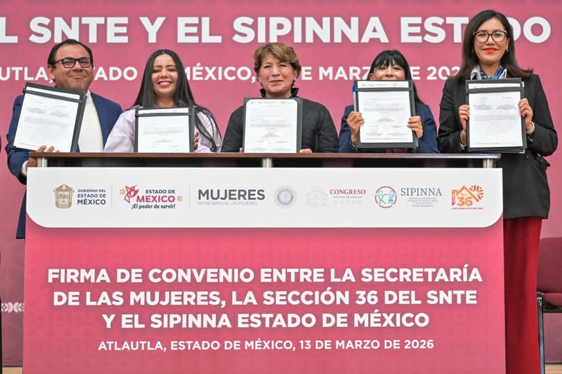 La Gobernadora Delfina Gómez Álvarez destacó que su administración no escatimará en esfuerzos para garantizar en el Estado de México entornos escolares seguros y libres de violencia para niñas, niños y adolescentes, al presidir la Firma de Convenio entre la Secretaría de las Mujeres estatal (SeMujeres), la Sección 36 del Sindicato Nacional de Trabajadores de la Educación (SNTE) y la Secretaría Ejecutiva del Sistema de Protección Integral de Niñas, Niños y Adolescentes (SIPINNA) estatal.